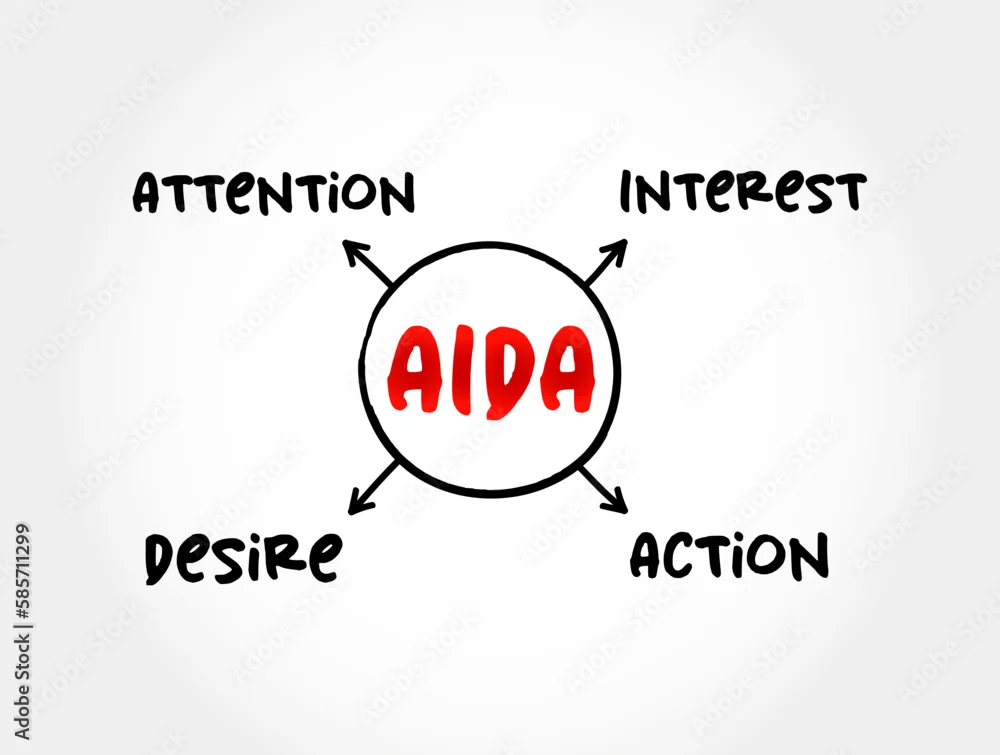 The AIDA model - one of a class of models known as hierarchy of effects models, mind map concept for presentations and reports