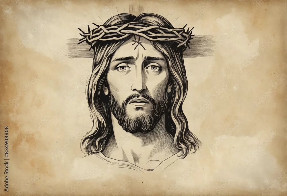 The Crucifixion of Jesus Christ on an Aged Paper Background with Room for Text