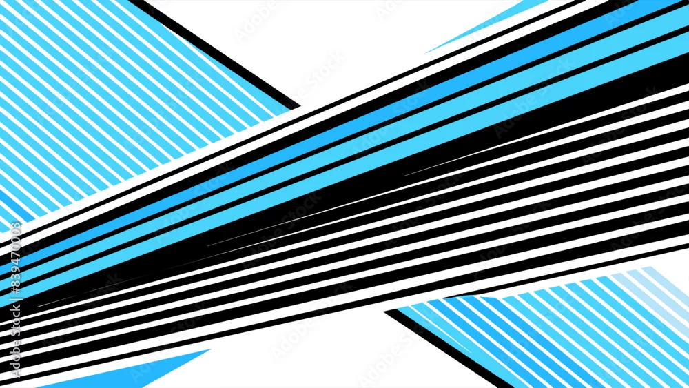 The geometric pattern of black and blue stripes crosses the white background diagonally, giving it a dynamic and modern look. The width and angle of the stripes vary.AI generated.