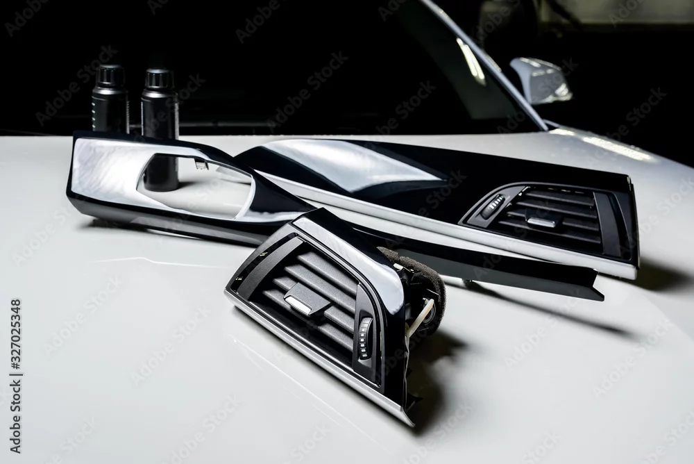 The ideal surface of plastic in the interior of the car is black after polishing and cleaning with car chemistry
