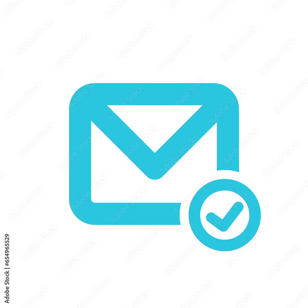 The letter symbol. Sign mail icon recieve on white background. With confirmation check. From blue icon serie.