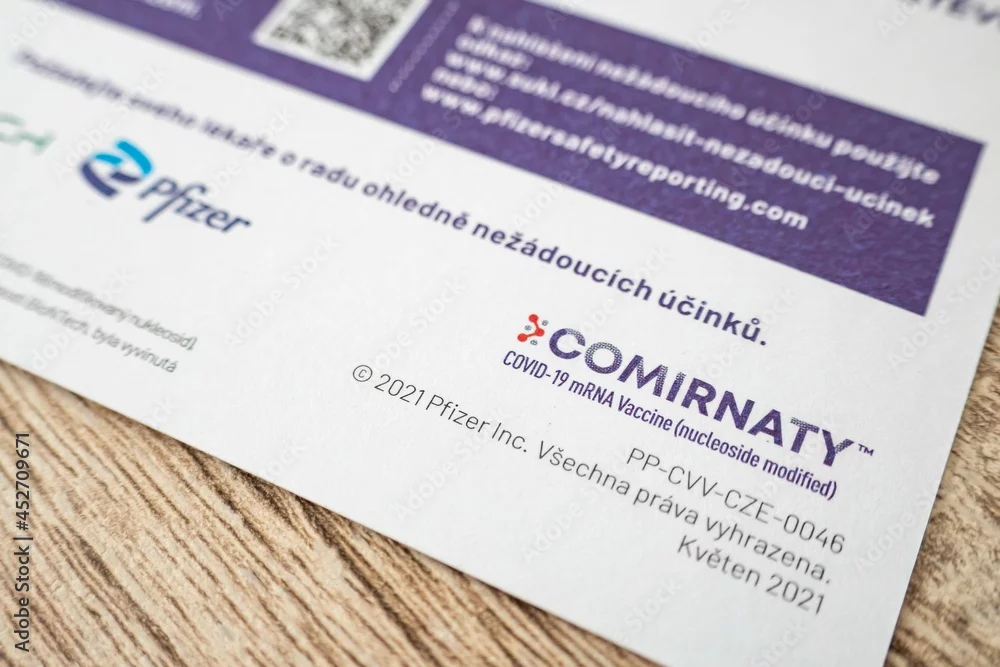 The logo Comirnaty of Pfizer vaccine which would be the first one to get FDA approval