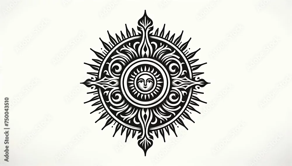 The sun was shining, pagan symbol. Universal Sun Symbol in Multicultural Interpretation. Slavic Sun God Yarilo