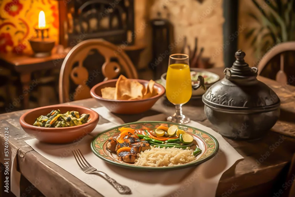 The table in the restaurant with Spanish cuisine, , Spanish typical, comida española, tradicional, in a old restaurant, generative ai