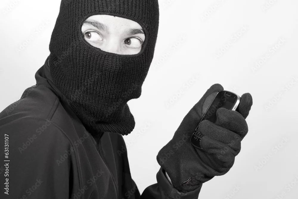 Thief with stolen smartphone