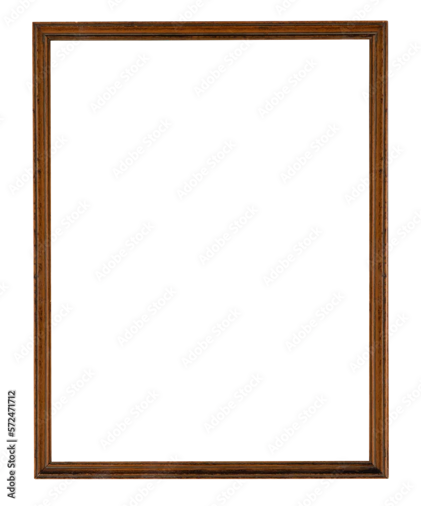 thin old dark wooden rectangle painting or photo frame isolated on a white background