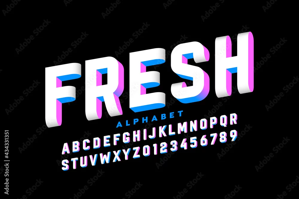 Three-dimensional style font design, 3d alphabet letters and numbers vector illustration