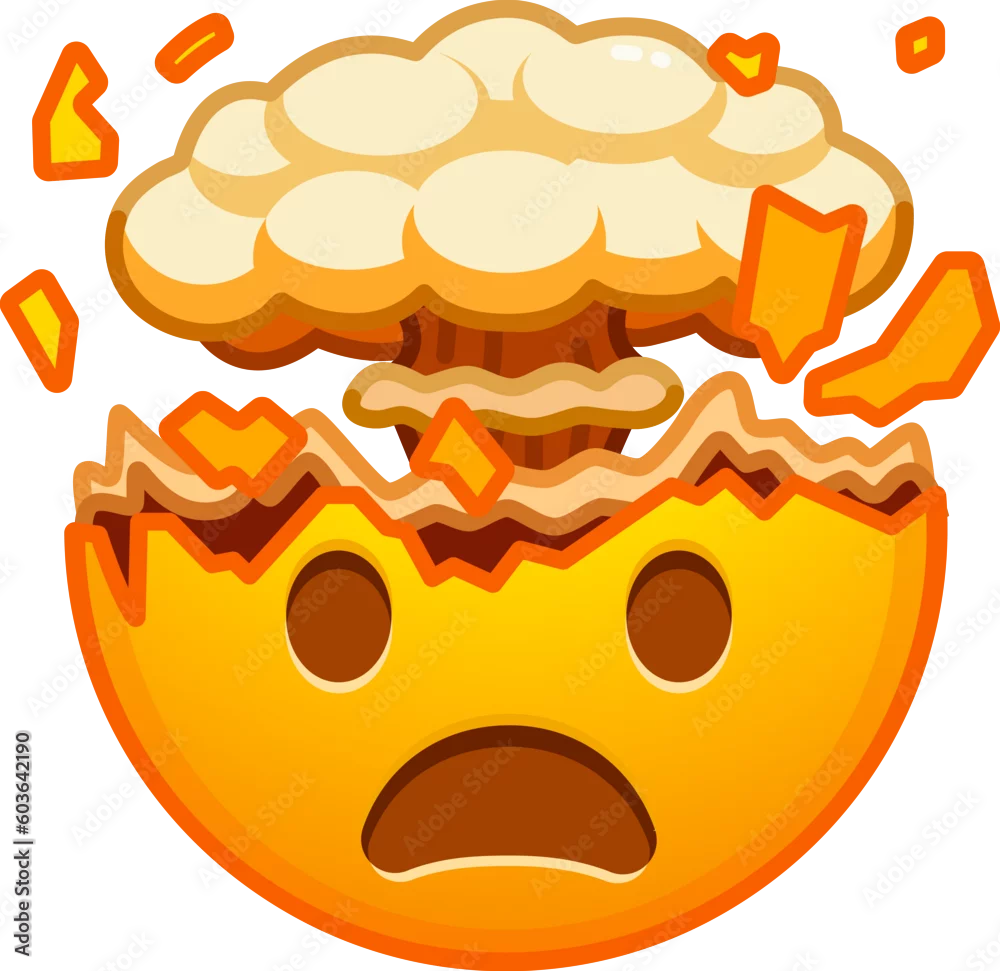 Top quality emoticon. Shocked face with exploding head. Yellow face emoji. Popular element. Detailed emoji icon from the Telegram app.