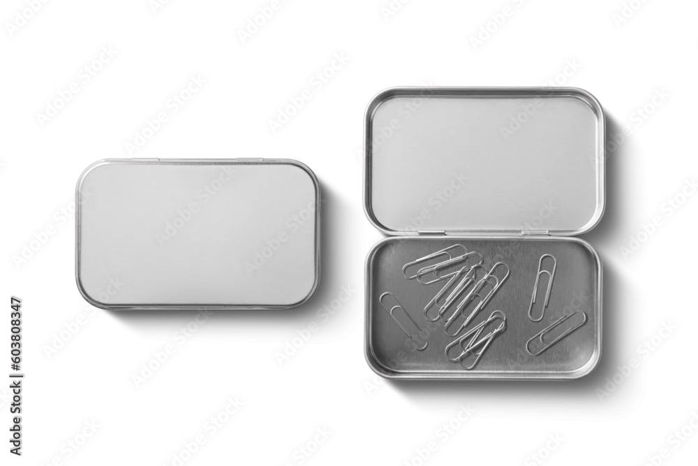 Top view of a silver metal box, isolated on a transparent background, PNG. High resolution.