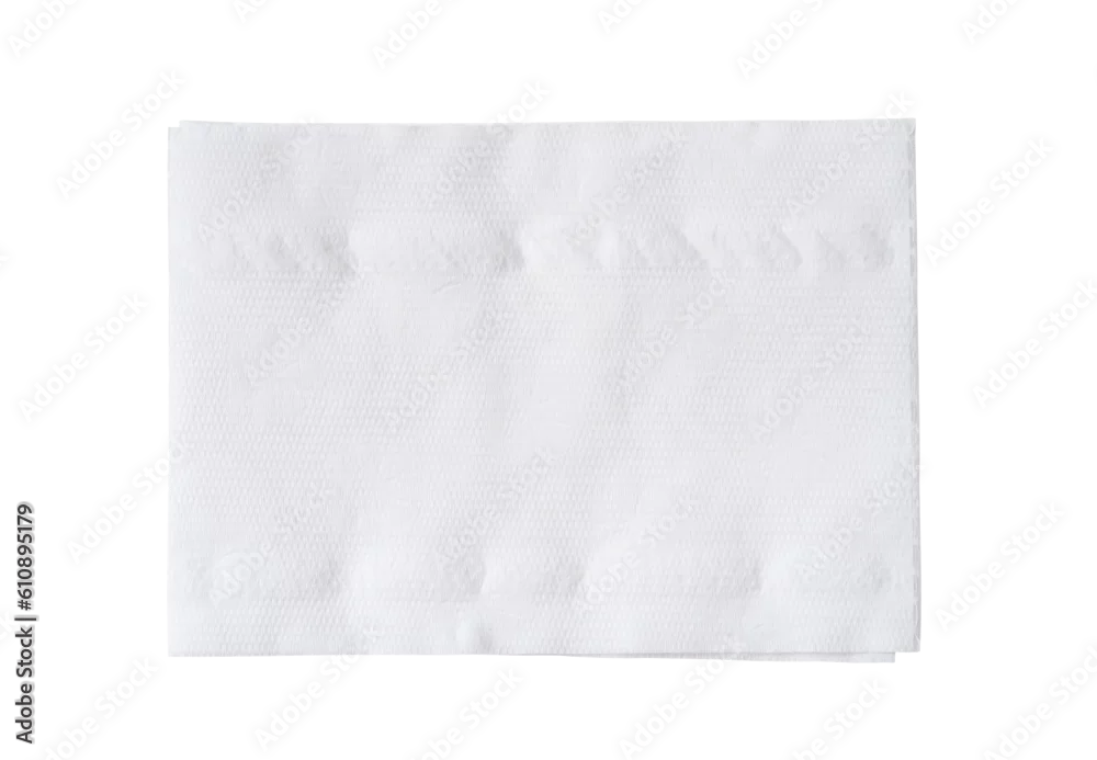 Top view of folded white tissue paper or napkin isolated on white background with clipping path in png file format.