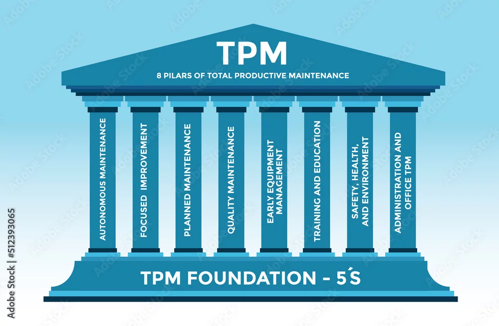 Total productive maintenance, TPM system, quality, improvement, safety, environment, maintenance, vector illustration management, lean manufacturing, six sigma.