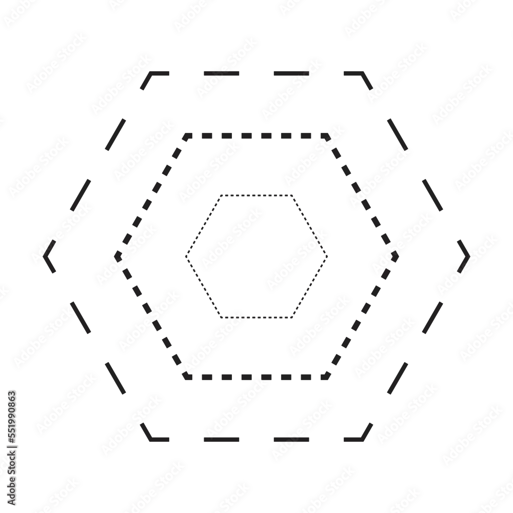 Tracing hexagon shape symbol, dashed and dotted broken line element for preschool, kindergarten and Montessori kids prewriting, drawing and cutting practice ...