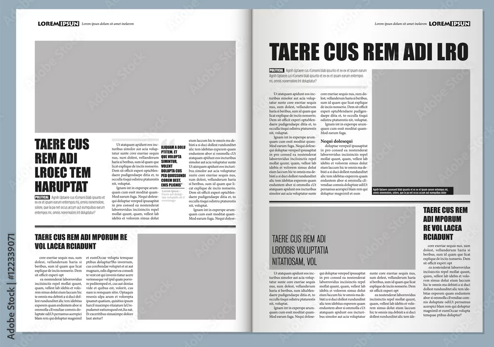 Traditional Graphical design Template newspaper, gray colors and A3 format