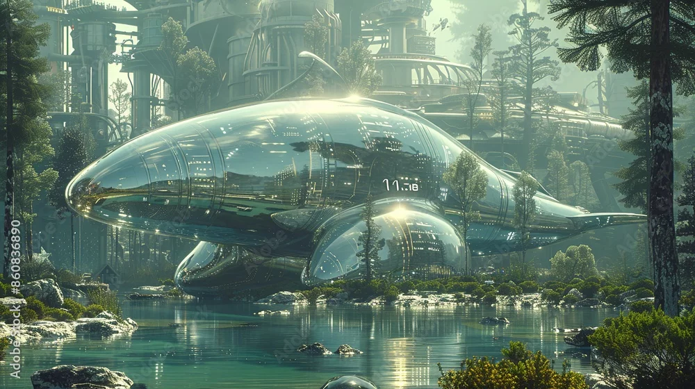 Transport yourself to a futuristic recycle center where endangered species are preserved in liquid metallic form, their surreal beauty a testament to the ...