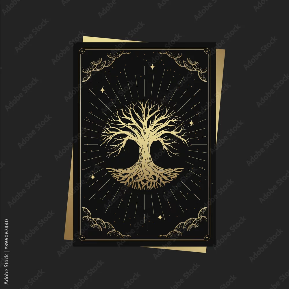 Tree of life. Magic occult tarot cards, Esoteric boho spiritual tarot reader, Magic card astrology, drawing spiritual or meditation posters.