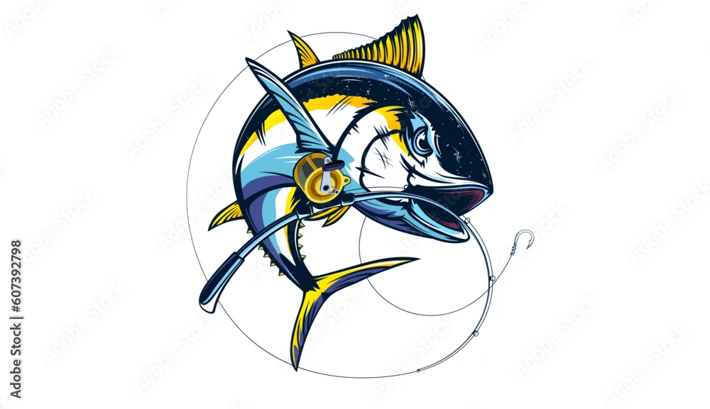 Tuna fishing logo vector illustration. Tuna fishing emblem isolated. Ocean fish logo. Saltwater fishing theme.