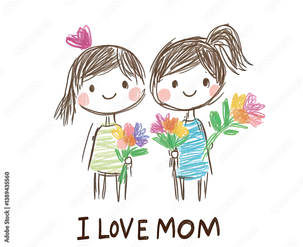 Two sweet little girls are holding flowers, feeling happy and lovely