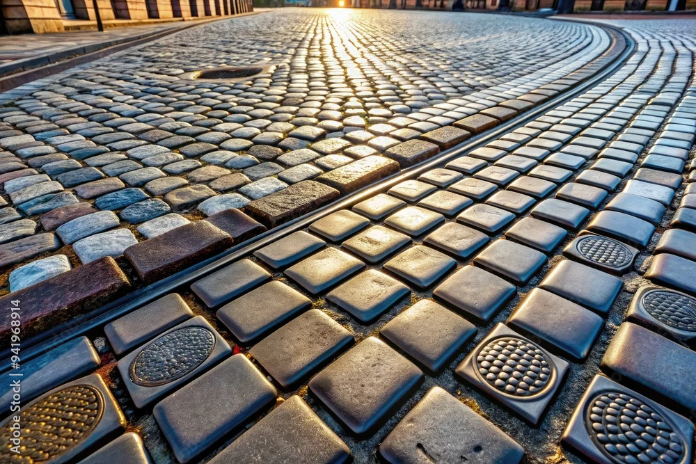 Urban Cobblestone Fusion: Edgy, industrial-inspired fusion of cobblestones and seamless metal, creating a raw, metropolitan aesthetic.