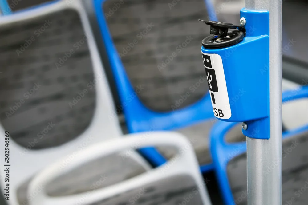 USB bracket for connecting and charging gadgets and smartphones in a modern bus, electric bus or tram