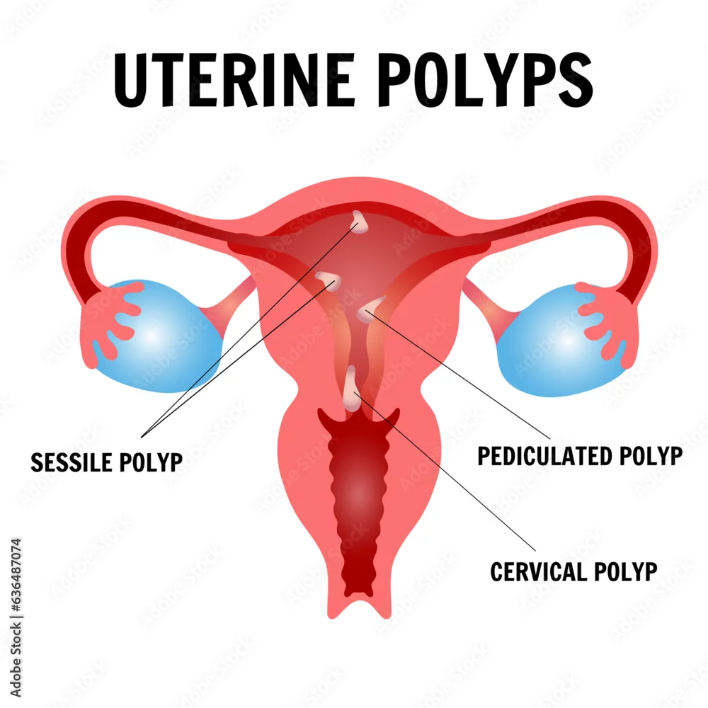 Uterine polyps infographic, sessile polyp, pediculated polyp, cervical polyp