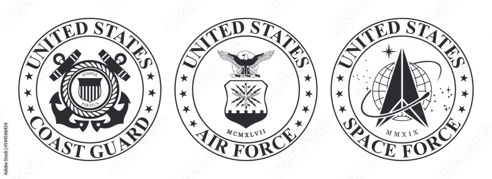 Vector black seal of the United States Coast Guard. US Air Force. US Space Force Logo