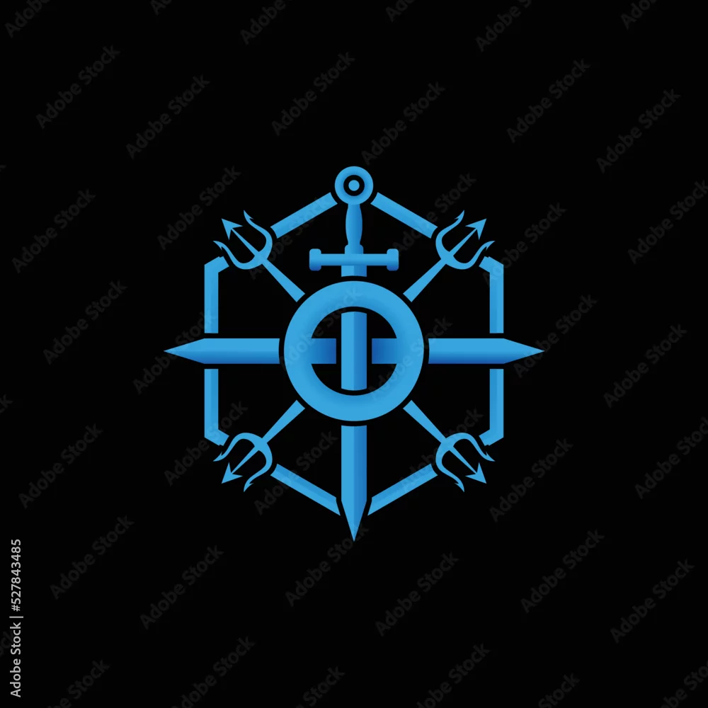 Vector graphics of trident and hexagon sword emblem logo in modern style