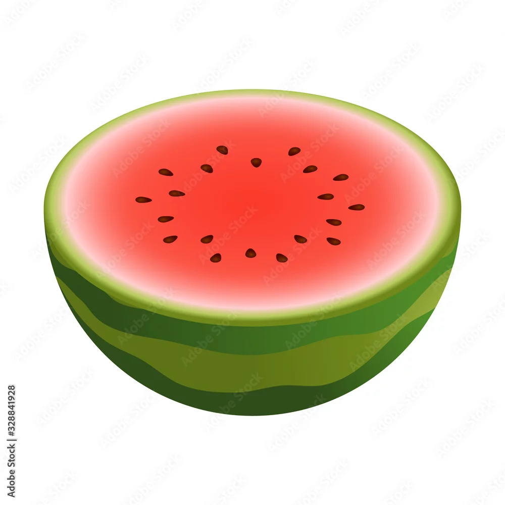 Vector half watermelon. Cute Vector illustration gradient fill isolated on white background, cartoon logo and icon. Concept of healthy lifestyle and ripe ...