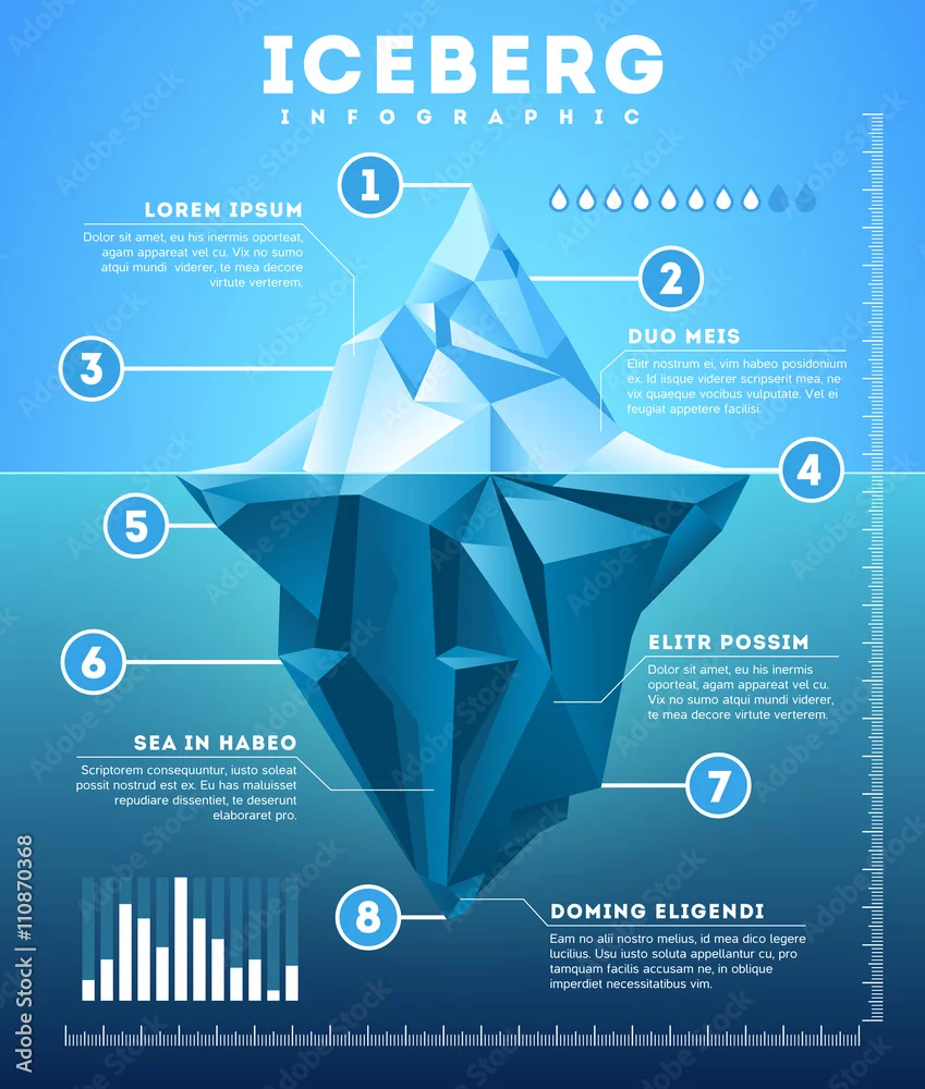 Vector iceberg infographic. Iceberg template business metaphor, financial info polygon iceberg illustration