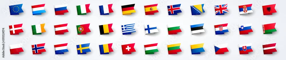 Vector Illustration Giant European Flag Set With Europe Country Flags.