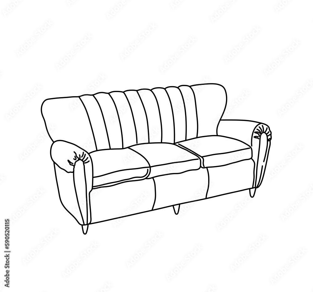 Vector isolated one single sofa couch leather cloths textile upholstery colorless black and white contour line easy drawing