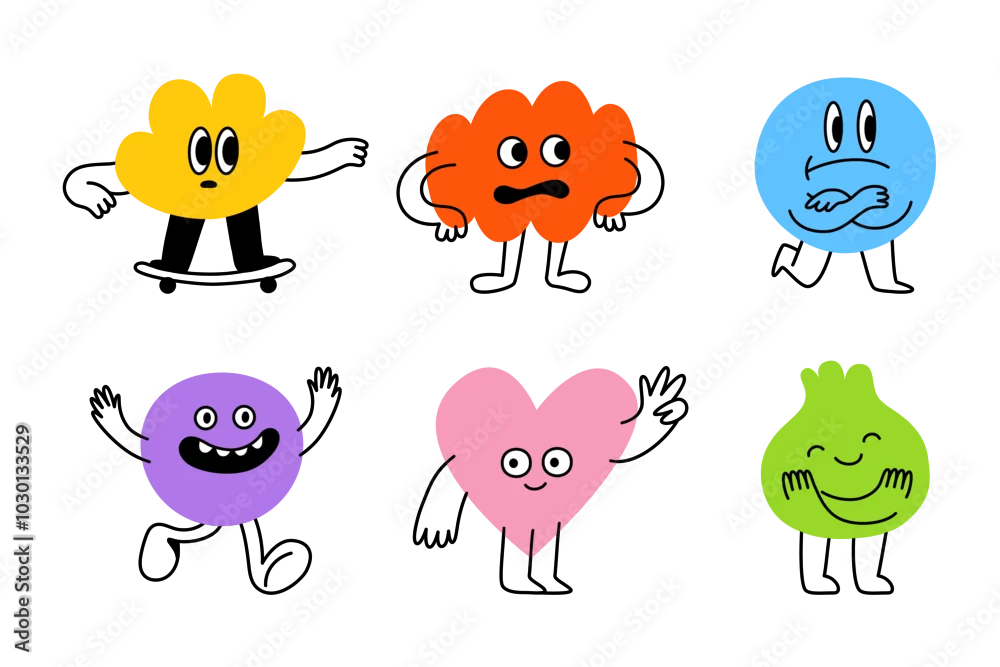 Vector logo design template and graphic elements for advertising, branding, posters and banners, funny cartoon illustrations with smiling character and mascots, abstract stickers and line icons