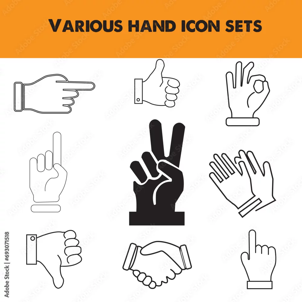 Vector set of different finger signs .Social media thumbs up, finger points, like, ok, like and dislike icons EPS 10