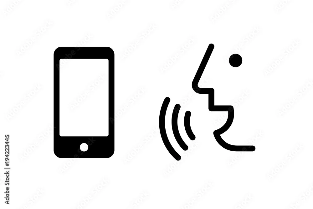 Voice recognition concept. Voice control mobile, smartphone icon. Black line, online, thin trendy logo, flat adaptation design for web site, mobile app, ...