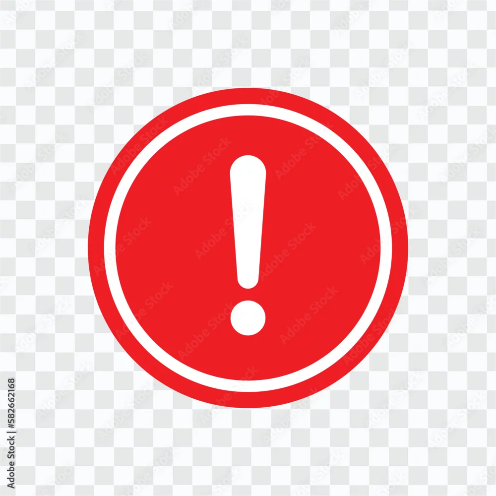 warning icon. Vector illustration of Red Icon Isolated on a transparent Background - Circle shape hazard warning sign with exclamation mark symbol.