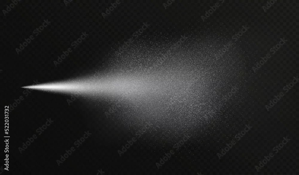 Water spray effect, realistic cosmetic mist, transparent atomizer splash. White fragrance aerosol texture, abstract cosmetic haze isolated on black. Vector ...