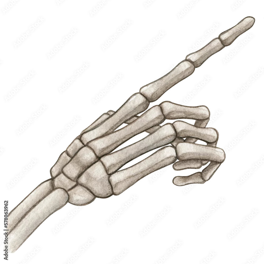 Watercolor hand drawn realistic human bones