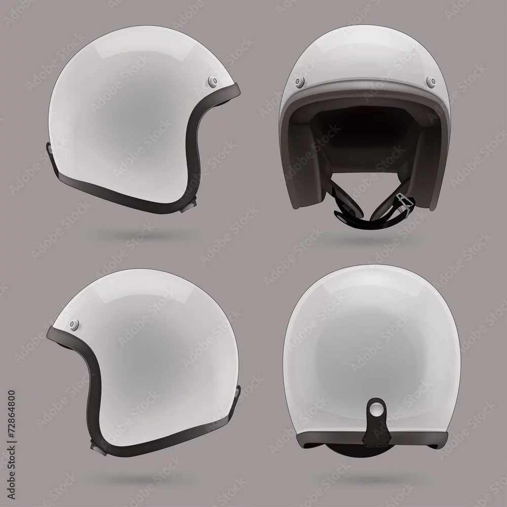 White motorbike classic helmet. Front, back and side view
