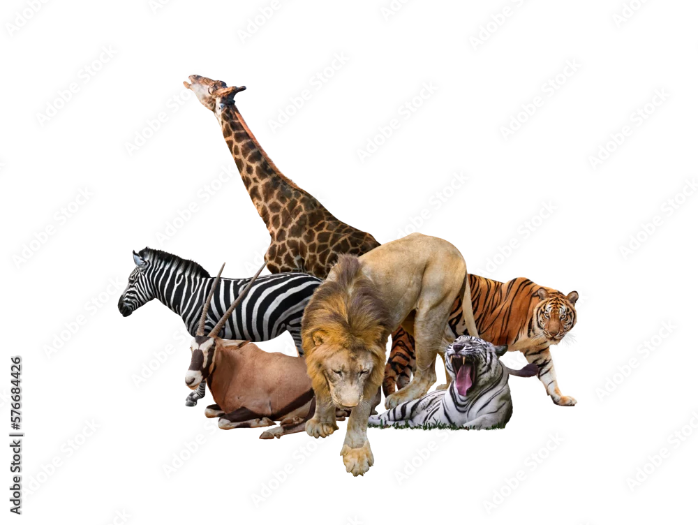 Wild Zoo Animals on transparent background. png file. Composite of a large group of wildlife zoo animals together over a white horizontal web banner or ...