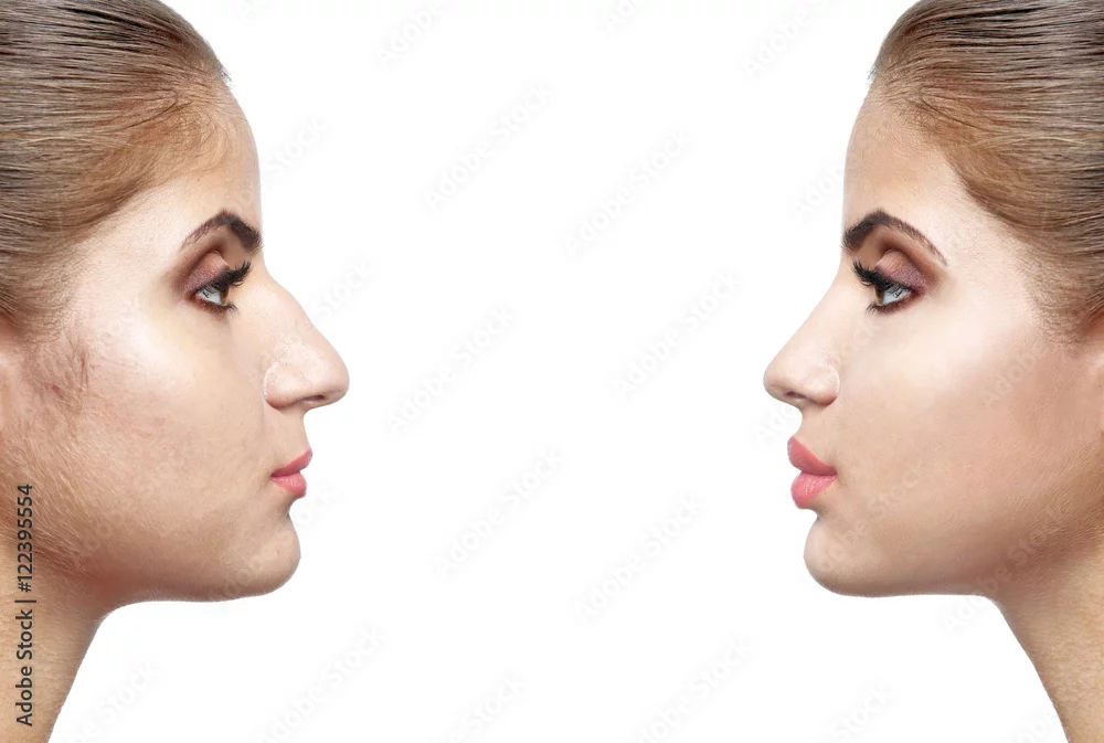 Woman face before and after cosmetic procedure. Plastic surgery concept.