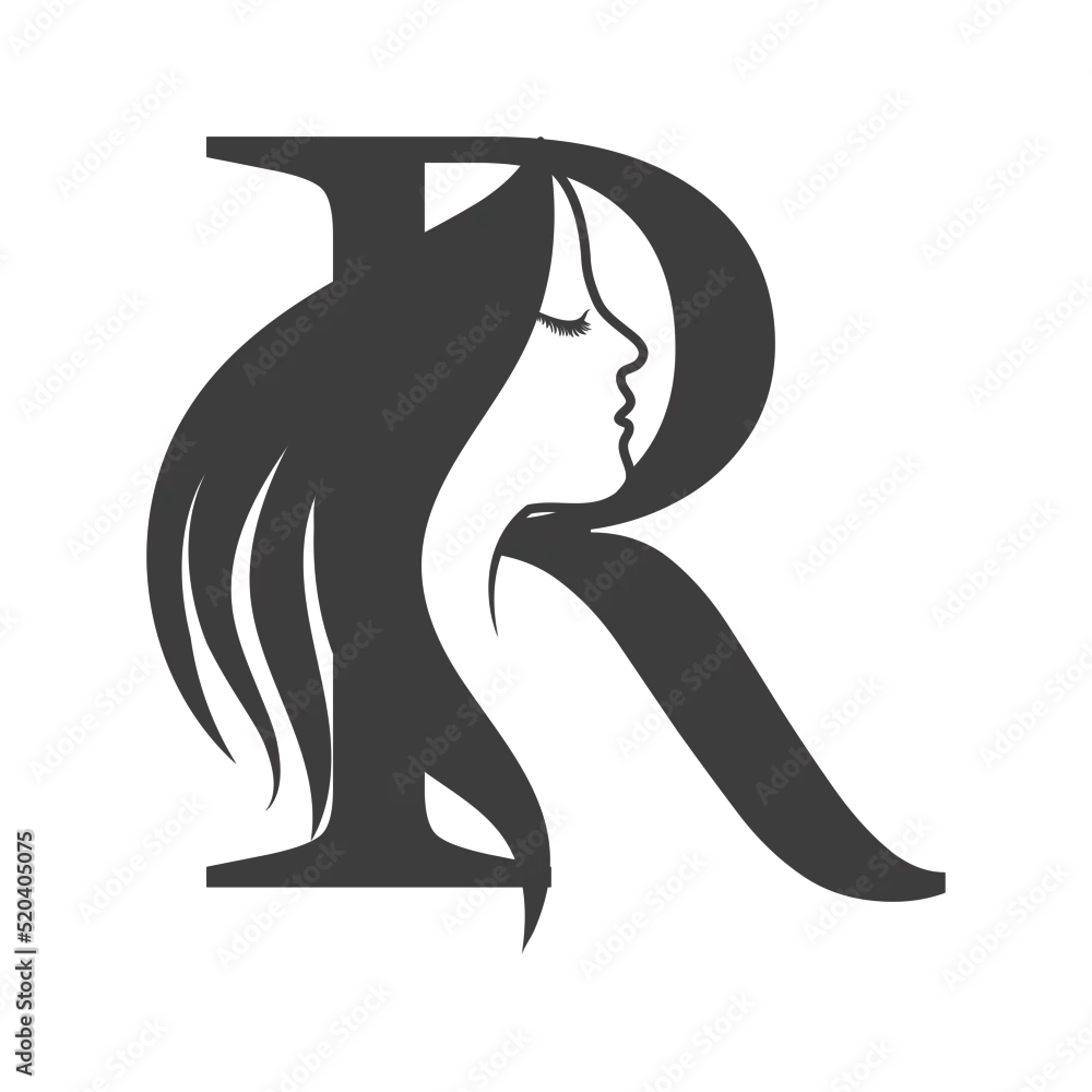 Woman face Letter R beauty logo design.