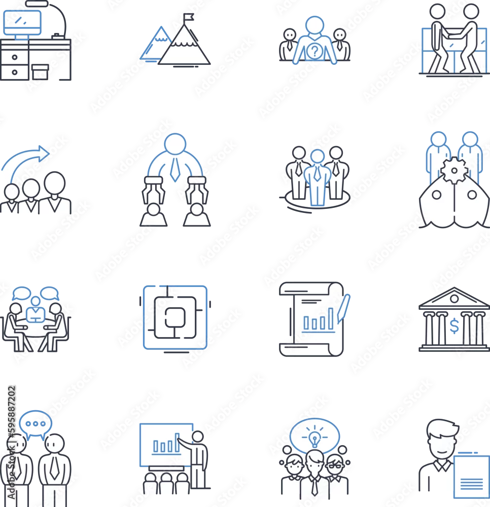 Workforce training line icons collection. Education, Development, Learning, Growth, Training, Progress, Advancement vector and linear illustration. Knowledge,Success,Skills ...