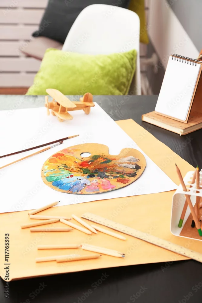 Workplace of creative person indoors
