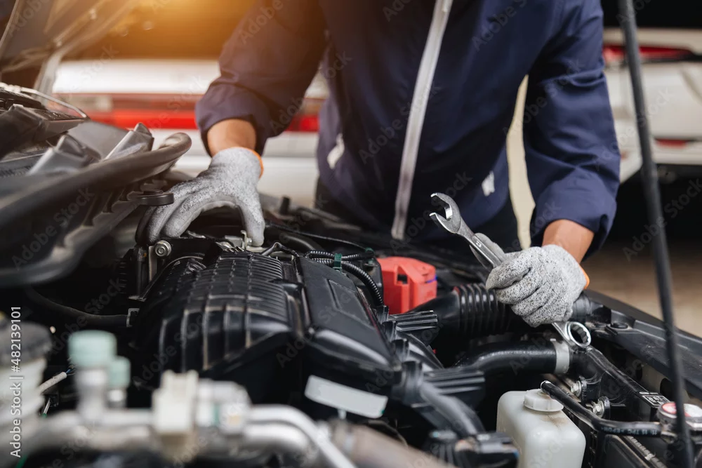 Automobile mechanic repairman hands repairing a car engine automotive workshop with a wrench, car service and maintenance,Repair service.