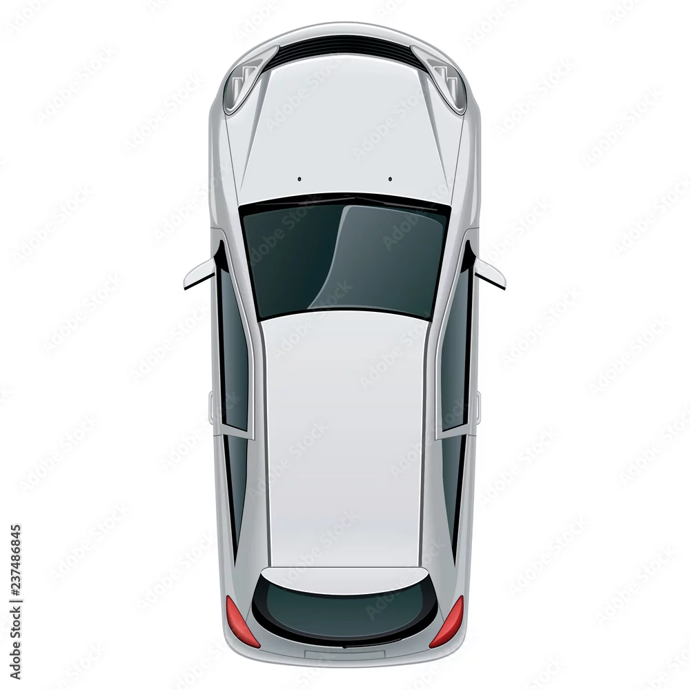 Car top view / Vehicle overhead isolated on white background, perfect use of 2d floor plans and any design project