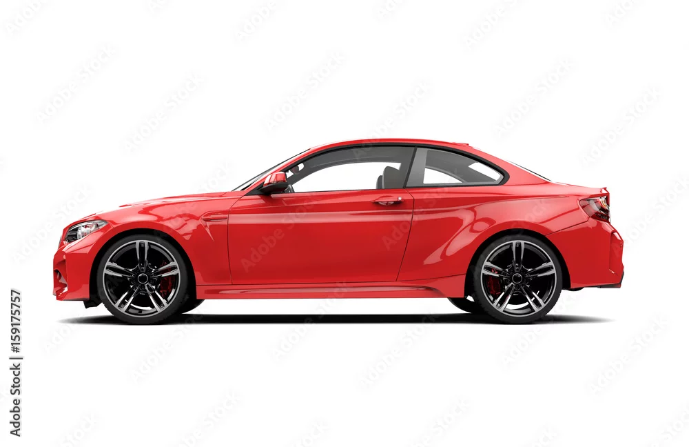 Lateral red sport car isolated on a white background