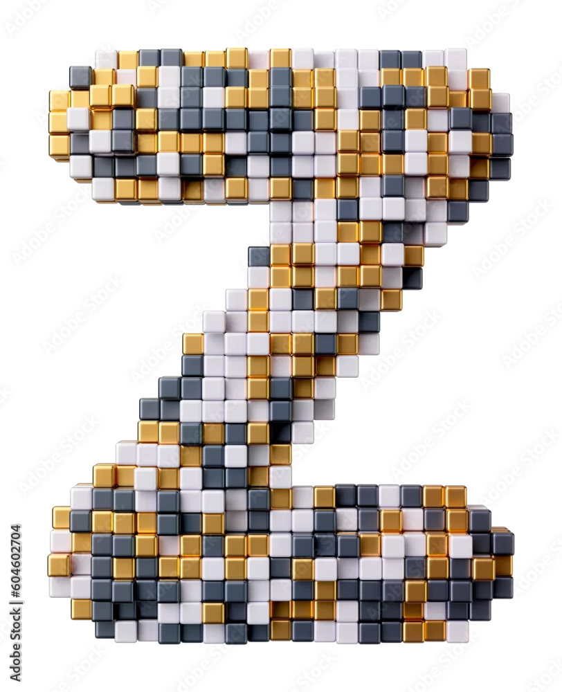 Letter Z of alphabet digital pixel font isolated on transparent background. Voxel font 8 bit pixel art. 3D render