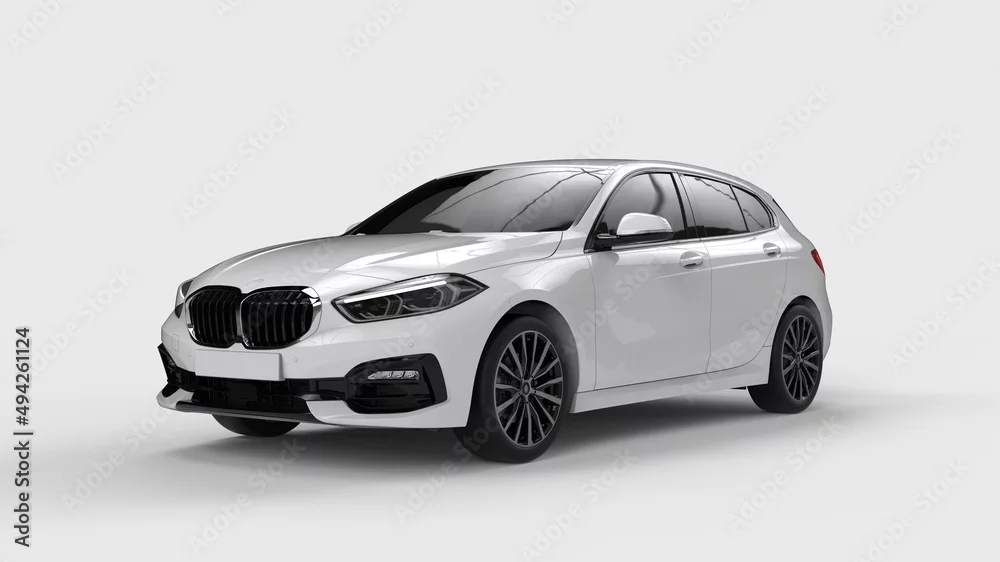 Mockup car coupe similar to BMW 1 series F40 isolated on white background front view