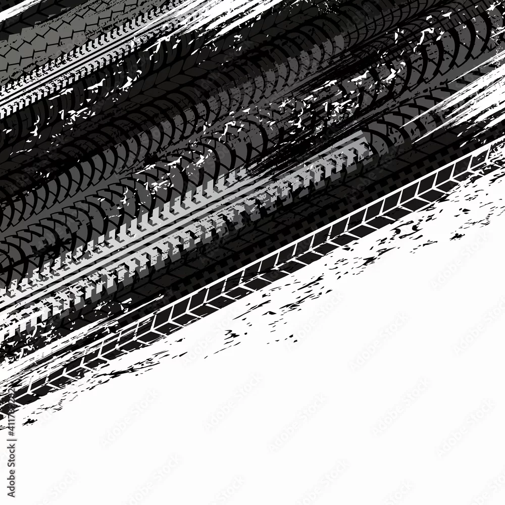 Motorsport and off road race grunge background with car tires traces. Vehicle protector grungy marks, motorbike wheel dirty treads and truck trails. Automobile ...