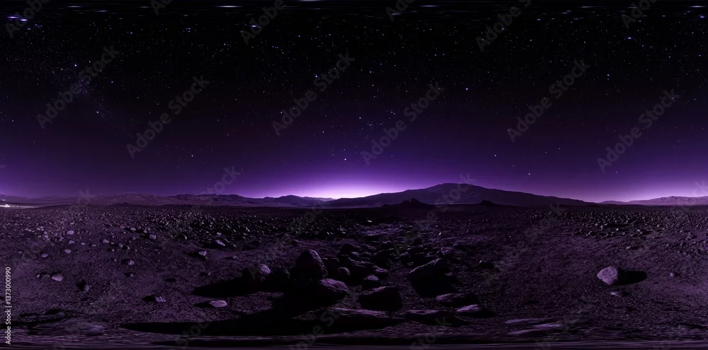 The night alien desert landscape features a 360 degree starry night sky texture, utilizing equirectangular projection for an environment map and HDRI spherical ...