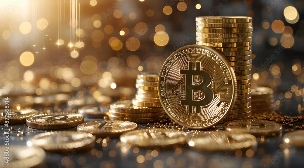An illustration of the bitcoin logo with an upward trending stock chart in background , bitcoin with price chart